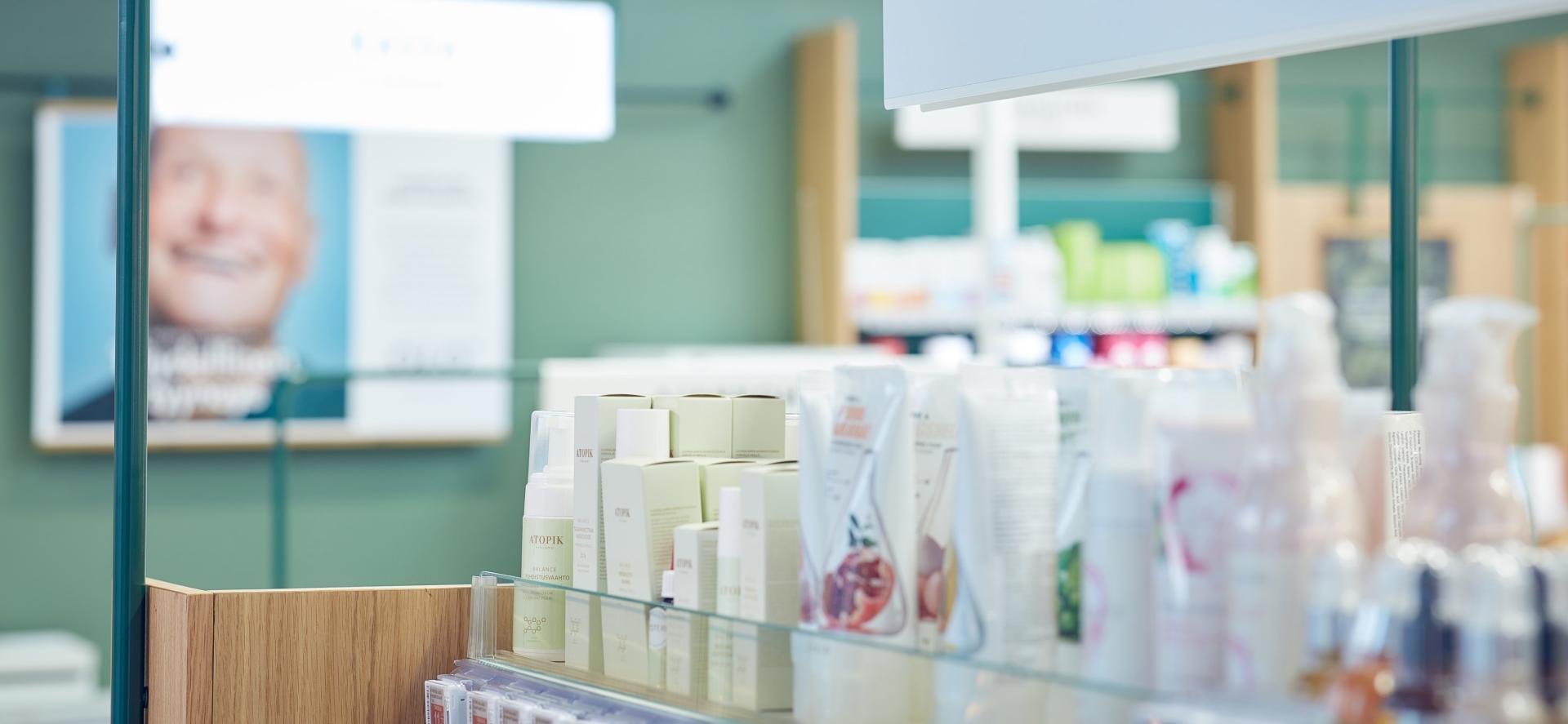 Tervetuloa lämpimän palvelun ja kattavan valikoiman apteekkiin! Sen lisäksi, että hoidat meillä helposti elämäsi lääkeostokset, pätevä apteekkihenkilökuntamme palvelee myös muun muassa lääkeneuvontaan, lääkkeiden koneelliseen annosjakeluun ja reseptien uusimiseen liittyvissä asioissa. Tuotevalikoimamme kattaa monipuolisesti erilaiset lääkkeet, itsehoitotuotteet, vitamiinit, ravintolisät, kosmetiikkaa ja terveystuotteita.